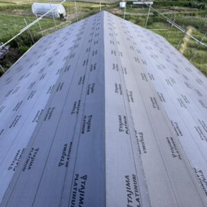 耐久性と防水性に優れるシルガードを使って、棟瓦の下地を整えます。