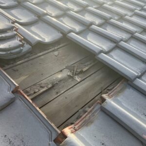 屋根上を確認すると、瓦が全体的にずれてきているのがわかり、ところどころ瓦が抜けて隙間ができていました。