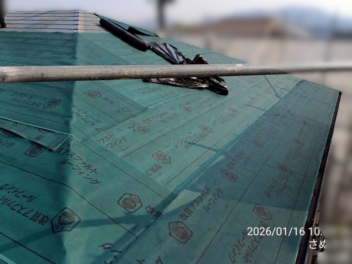 ルーフィングは「太陽印 改質アスファルトルーフィング サンシールHG+」を使用。