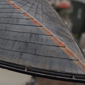 その際に使うのが「粘着性」のルーフィングです。テープを貼りつけるようにシートを張ることで、既存屋根材のズレやシートそのもののズレを防ぐことができます。ただ注意点があり、貼りつける際にコケや細かいゴミやほこりがあるとしっかりと既存屋根材に粘着することができません。セロテープに埃が付いたときにくっつかなるのと同じです。ですので、屋根カバー工事には水洗いが必須になります。