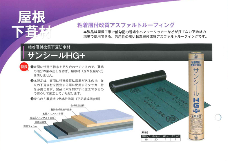 使用するのは「粘着層付」改質アスファルトルーフィングです。
